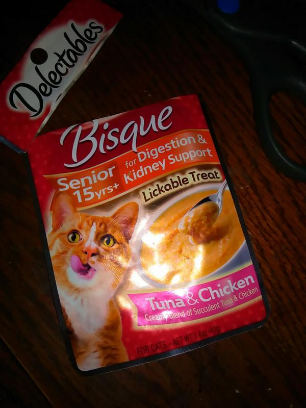 Hartz Delectables Non-Seafood Bisque Lickable We Cat Treats for Adults. I feel terrible because I hate leaving her out when the other cats get treats. 1752 with Subscribe Save.